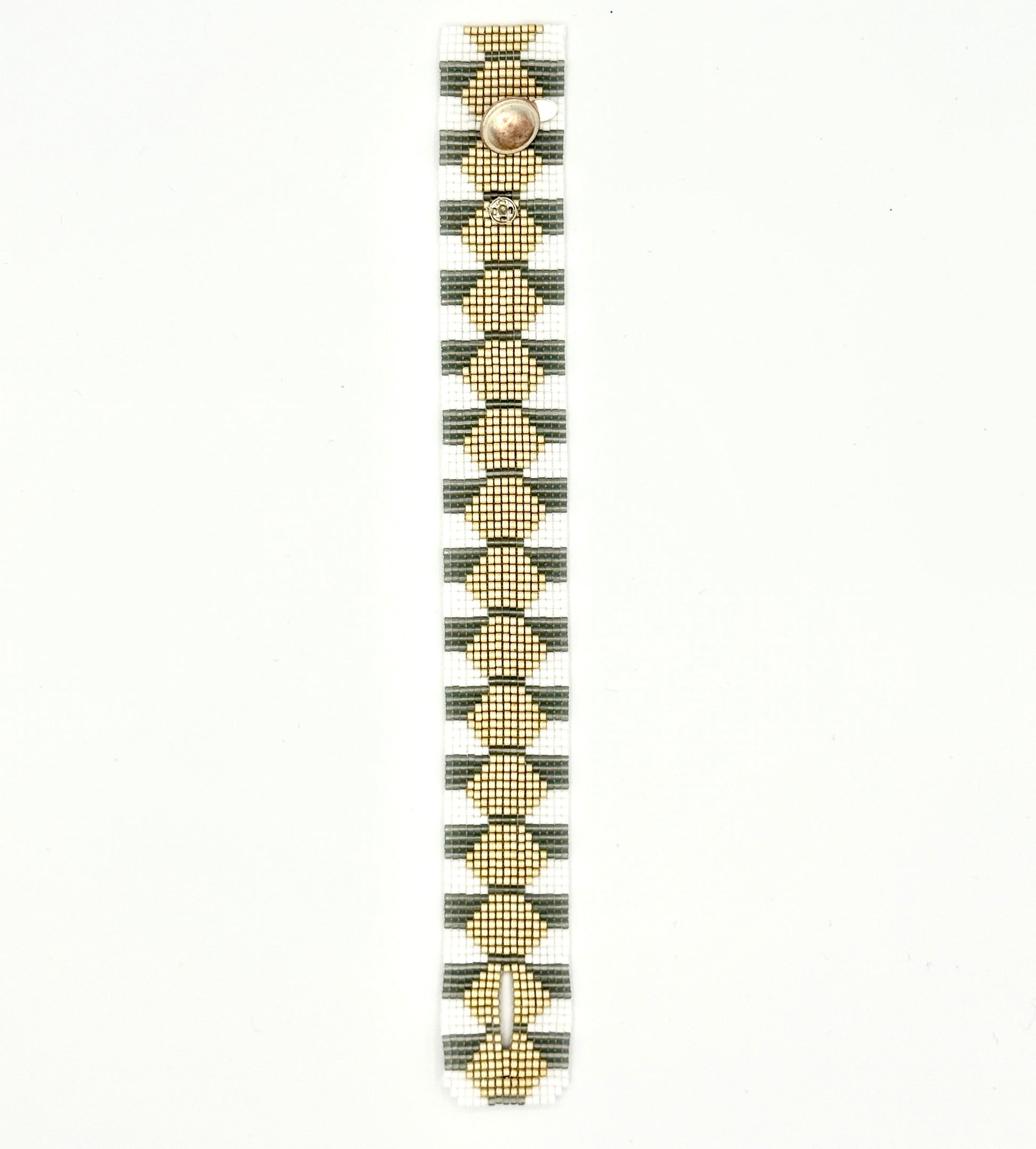 Inspired from Dyani White Hawk's Wisdom piece, this meticulously loomed bracelet features precision-cut Japanese glass beads and a secure button-and-snap fastening system for reliable everyday wear.